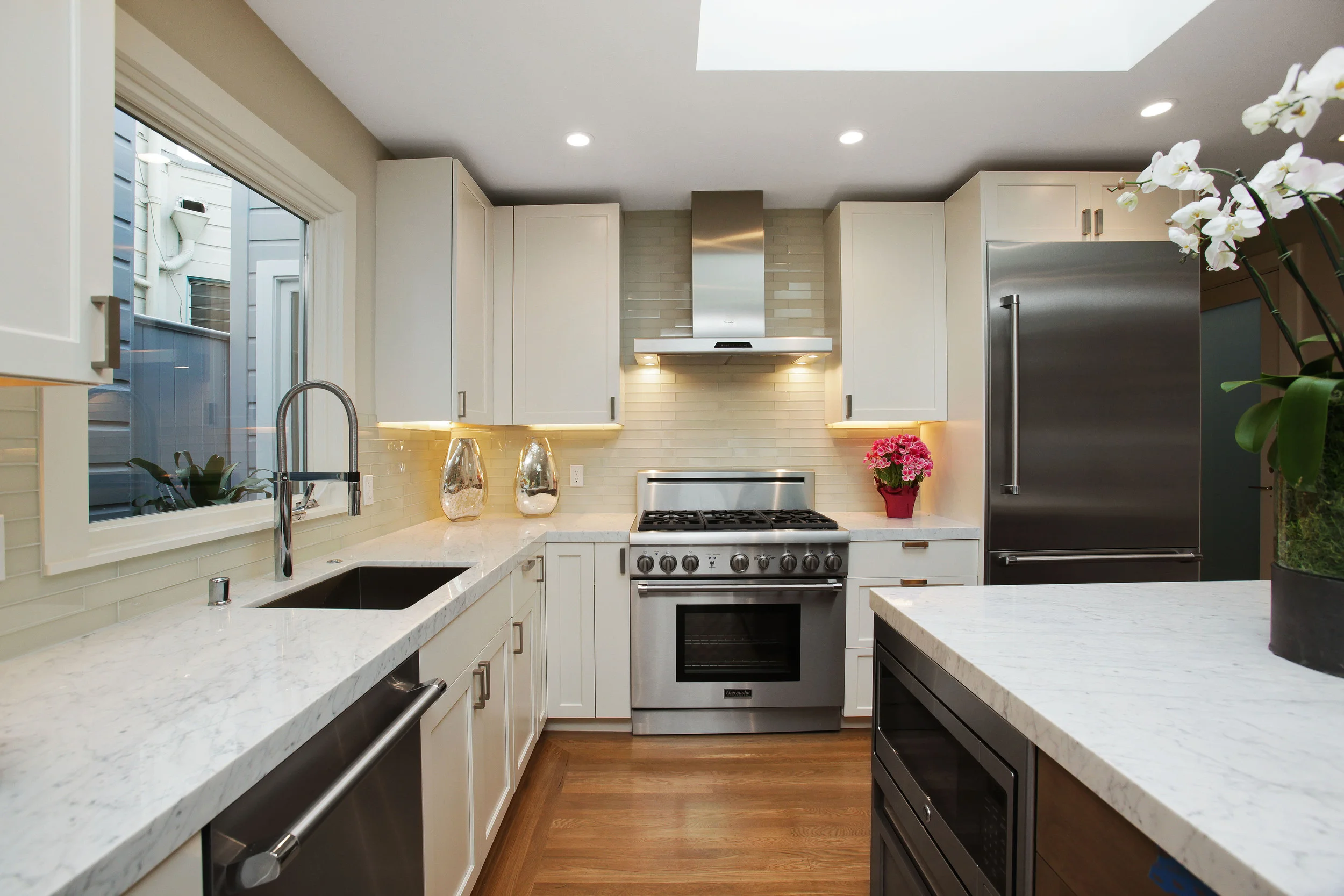 These beautiful Marina homes were updated with designer tile and countertops throughout the kitchens as well as each bathroom.